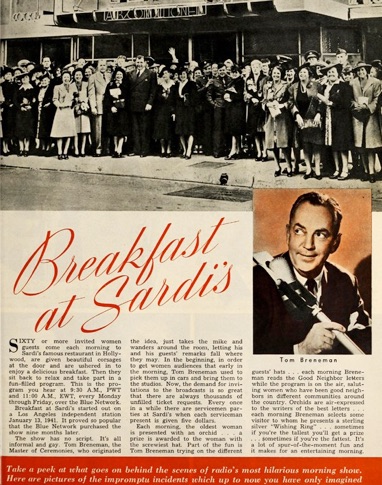 SIXTY or more women guests come each morning to Sardi‘s famous restaurant in Hollywood, are given beautiful