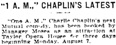 & „1 A. M.,“ CHAPLIN‘S LATEST