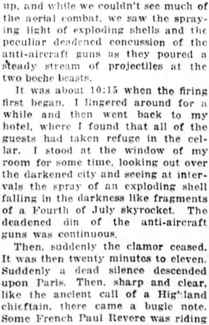 Bertha,‘ was sending shells into Paris at regular intervals.