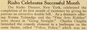 & Rialto Theatre, exterior by day, marquee In Mack Sennett