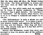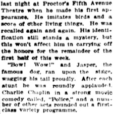 Bow! Wow! and Jasper, the famous dog, ran upon the stage, wagging his tail proudly. After each stunt he was roundly