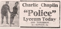 Advertisement. „Charlie Chaplin in Police. Lyceum