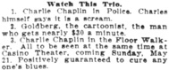 Theater commencing Sunday, 21. Chas. Chaplin in „Police“;