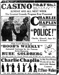 Charlie Chaplin‘s latest photoplay, Police, will be shown for the