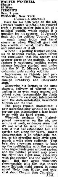 Back for his fifth year on the air Jergen‘s Walter Winchell