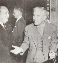 in confab with Chaplin, Alf Reeves, his g. m.;