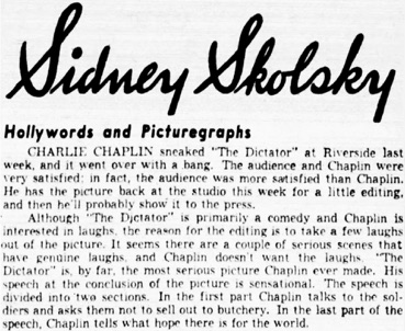 CHARLIE CHAPLIN sneaked The Dictator at Riverside