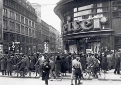 Tauentzien in Berlin vor dem Schuhhaus Leiser, dessen