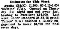 is the front for the date at the B. & K. Apollo, Chicago, as arranged