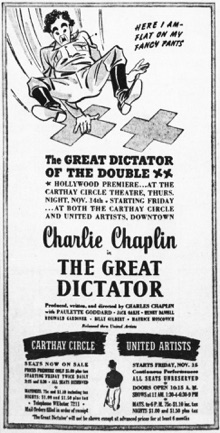 Charles Chaplin‘s The Great Dictator, will have its premiere