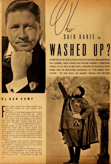 Jack undertook to play Mussolini in Chaplin‘s picture, „The