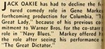 to Warner Bros. for the co-starring role in „Navy Blues.“ Markey