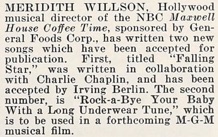 & Meredith Willson, Hollywood musical director