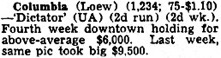 Dictator (UA) (2d run) (2nd wk.). Fourth week downtown holding