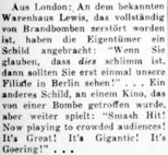 wurde, aber weiter spielt: „Smash Hit! Now playing to crowded audiences! It‘s Great! It‘s Gigantic! It‘s Goering!“