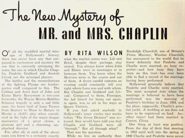 Editorial content. „The New Mystery of MR. and MRS. CHAPLIN