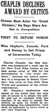 Chosen Best Actor for ,Great Dictator,‘ He Says Stars