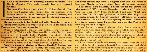 Editorial content. „WILL THE CHAPLINS DIVORCE?