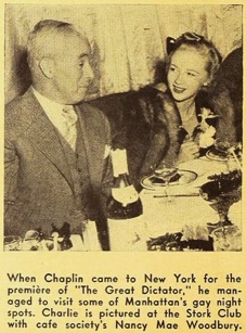 night spots. Charlie is pictured at the Stork Club with cafe society‘s Nancy Mae Woodbury.