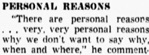 ,There are personal reasons . . . very, very personal