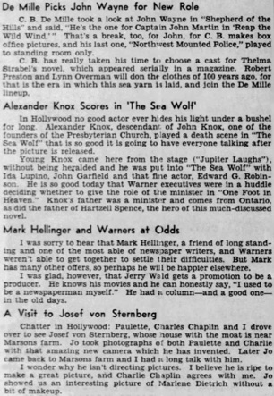 Louella O. Parsons, Inquirer, Philadelphia, Pa., March 12, 1941.