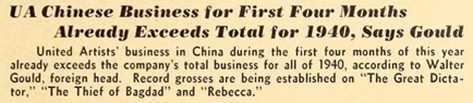 United Artists‘ business in China during the first four