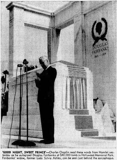 Douglas Fairbanks at $40,000 tomb in Hollywood Memorial