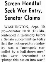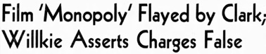 Editorial content. „Film ,Monopoly‘ Flayed by Clark;