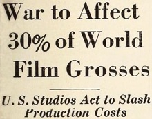 Editorial content. „War To Effect 30% of World Film Grosses