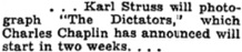 & . . . Karl Struss will photograph „The Dictators,“ which Charles