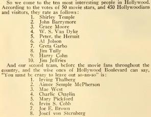 in Hollywood. According to the votes of 50 movie stars, and 450