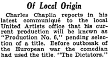 & Among new productions in work are „Rebecca“ at Selznick International. (...) Charles Chaplin has begun