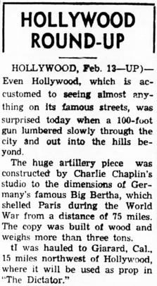 „BIG BERTHA“ MOVES TO FILM „WAR FRONT“