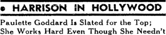Paulette Goddard Is Slated for the Top;