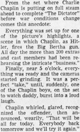 Chaplin whirled, glared, recognized the offender, then