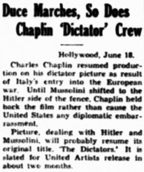 „Duce Marches, So Does Chaplin ,Dictator‘ Crew“