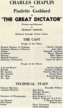 The Great Dictator world premiere is in New York Oct. 15, 1940