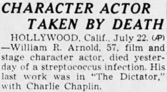 character actor, died here. His last appearance for the screen