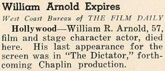 Hollywood – William R. Arnold, 57, film and stage