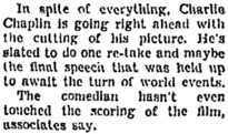 Charlie Chaplin Tuesday dispelled any doubt that he would