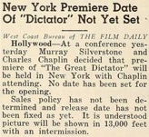 The Great Dictator world premiere is in New York Oct. 15, 1940