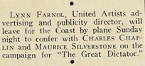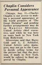 to confer with Charles Chaplin and Maurice Silverstone on the campaign for „The Great Dictator.“