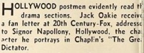 Jack Oakie received a fan letter at the 20th Century-Fox,