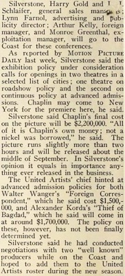 dual bills. Sales policy for the Chaplin picture will be determined