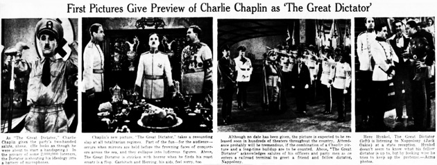 The Great Dictator world premiere is in New York Oct. 15, 1940