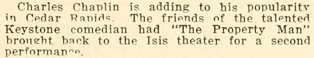„Charles Chaplin is adding to his popularity in Cedar Rapids”