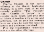 Charlie Chaplin is the movie offering at the Grand,