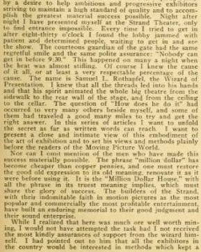 S. L. Rothapfel, The Art of Exhibition Continued