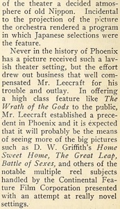 gave the foyer of the theater a decided atmosphere of old Nippon. Incidental to the projection of the picture the orchestra