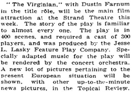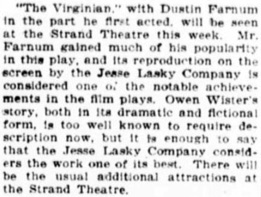 & „The Virginian,“ with Dustin Farnum in the part he first acted,